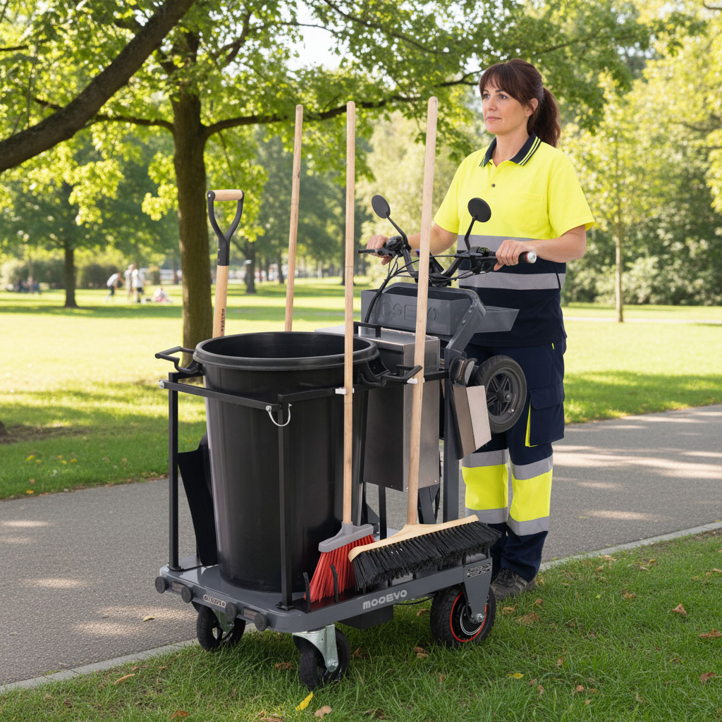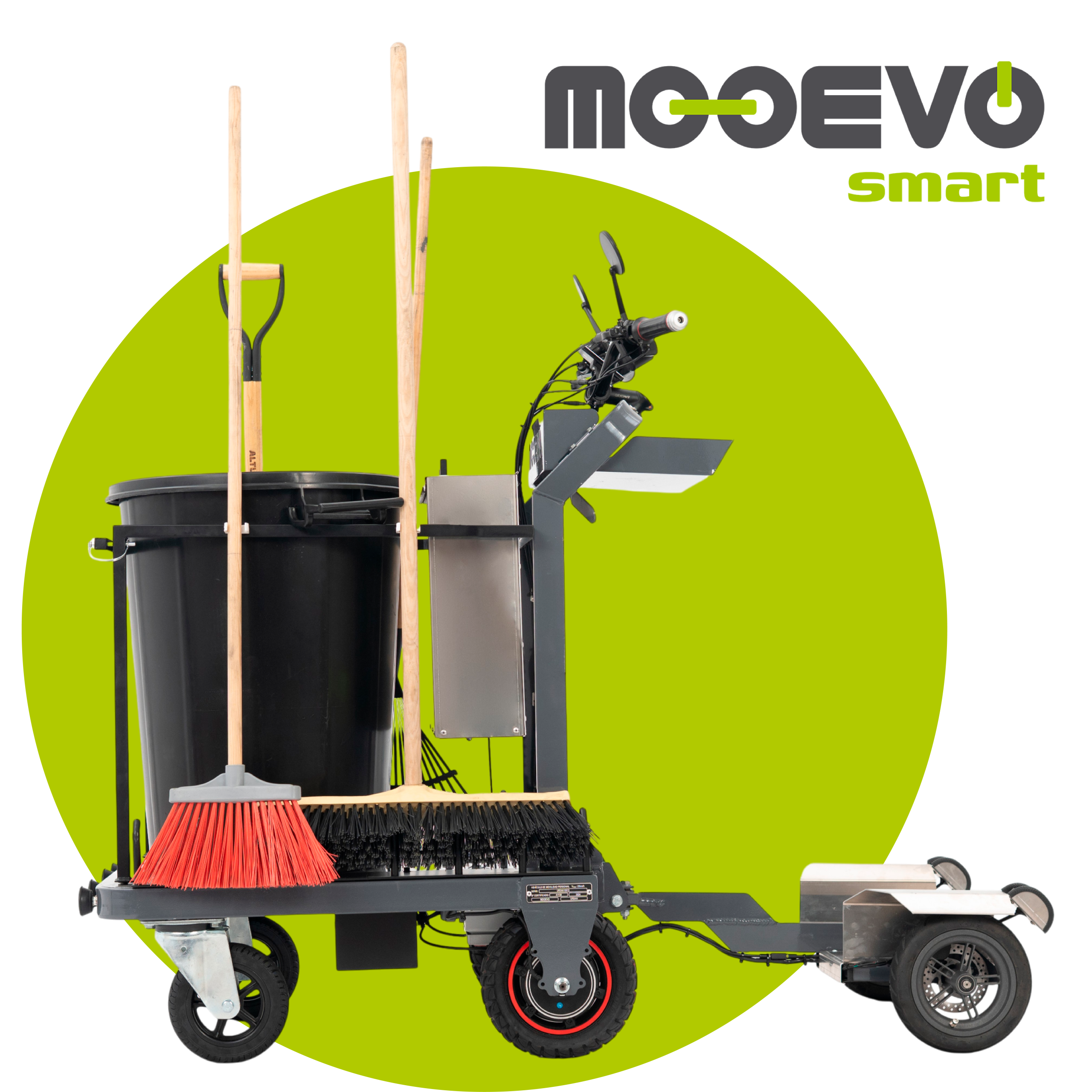 MOOEVO SMART CLEAN es una solución innovadora que ayuda a realizar las labores de carga, logística y limpieza de forma fácil, rápida y eficiente. Gracias a su exclusivo sistema, permite un doble uso, como patinete eléctrico para desplazarse por la calzada, y como carrito eléctrico asistido para acceder a zonas peatonales e incluso interior de edificios. Su rejilla multiusos, permite diferentes configuraciones multitarea.